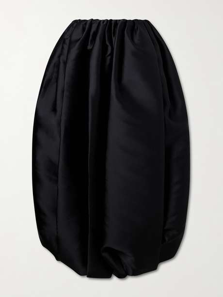 Calvin Klein Collection’s 'Yael' skirt is crafted from lustrous double duchesse satin blended with silk, giving the fabric a sculptural drape. Designed to sit high on the waist, the gathered tube silhouette creates striking volume through the floor-length shape. Balance it with a crisp shirt or minimal knit.
