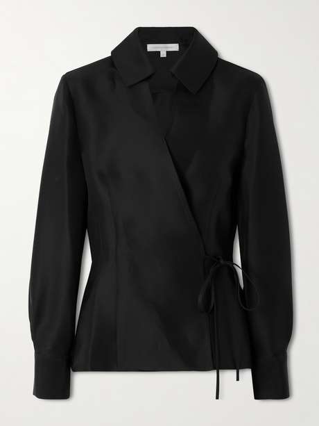 Carolina Herrera's blouse is timeless but with a point of drama. It’s been tailored in the USA from lustrous silk and has a sophisticated wrap profile with slim ties at the side. The collar is just slightly oversized for prominence and frames the face beautifully.