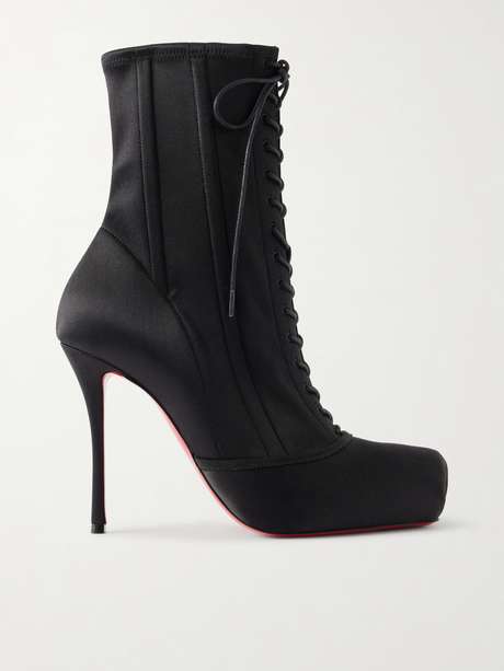 Christian Louboutin's 'Pavlova' boots pay homage to ballerinas' pointe shoes – the toe is elegantly squared in the same vein. They're made from satin with slim laces and corset-like paneling.