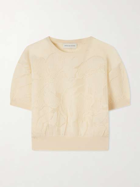 Dries Van Noten’s sweater is defined by subtle notes of femininity. Knitted in Belgium from cotton-blend, it features delicate blooms throughout and ribbed trims for definition. Style it with a flared skirt.