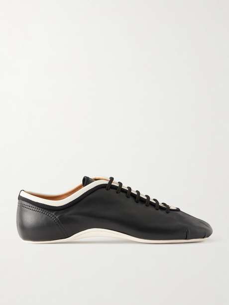 Dries Van Noten’s sneakers recall vintage climbing styles. Made in Italy from leather, they have a black and white contrasting design and are set on a sole with an exaggerated arch.