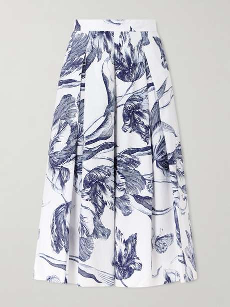 ERDEM Pleated floral-print cotton-poplin midi skirt