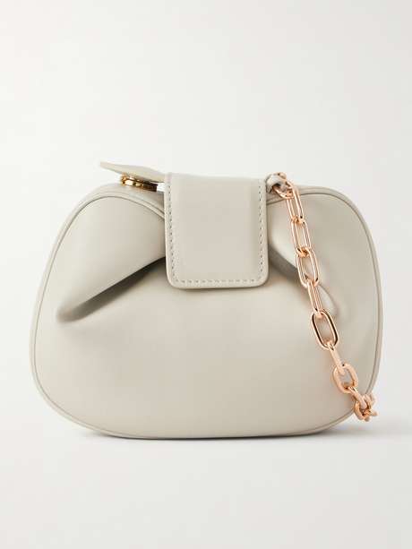Gabriela Hearst pays close attention to the particular shape and structure of each bag, and this 'Soft Demi' clutch is certainly distinctive. Made from light gray leather, it has a slouchy, spherical design with a folded top. Secure your cards, keys and lipstick inside.