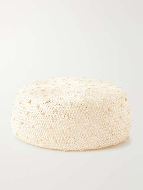 Gigi Burris' designs are handmade locally in New York using traditional techniques. This 'Lauren' hat is crafted from raffia and is shaped to sit elegantly at the top of the head.