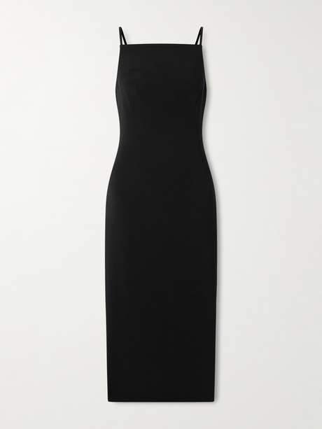 Givenchy's dress is chic and timeless in its minimalism. It's been made in Italy from smooth crepe with a high square neckline and pleated panels at the back hem that add a little texture and easy movement.