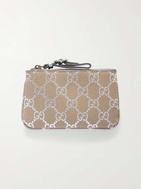 Gucci's wallet has a silver-tone ring that can attach to your keys or bag. It's made from textured-leather printed with 'GG' motifs that match the shiny trims.