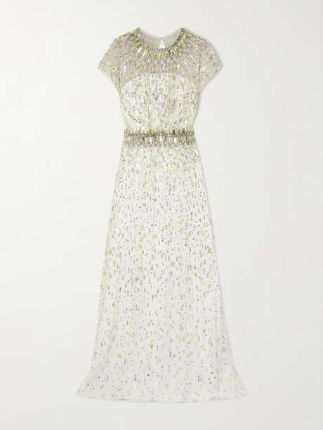 EXCLUSIVE AT NET-A-PORTER. Jenny Packham is beloved by celebrities and even royalty for its intricately embellished, elegant gowns. This 'Lauretta' style is cut from sheer organza and intricately decorated with crystals and beads that are more saturated along the neckline and nipped-in waist.