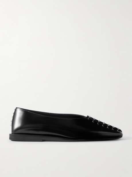 Offering a new perspective on ballet shoes, Jil Sander's flats are punctuated with silver-tone studs through the square toes and backs. They've been expertly crafted in Italy from leather that's buffed to a polished shine.