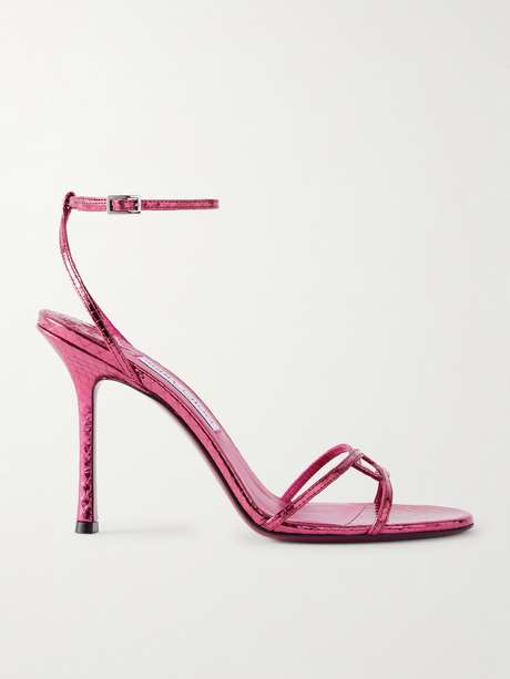 JIMMY CHOO Leo 100 croc-effect metallic-leather sandals