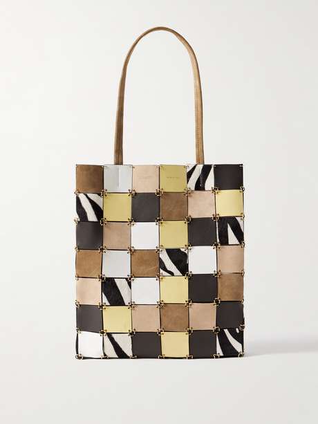 KHAITE's 'Emma' tote made its debut with the brand's Spring '25 collection, and has since seen a variety of equally cool updates. This version is made from panels of leather, calf hair and suede, each square hand-painted along the edges and pieced together by gold-tone grommets. There's room inside for a wallet, paperback and a few cosmetics of your choice.