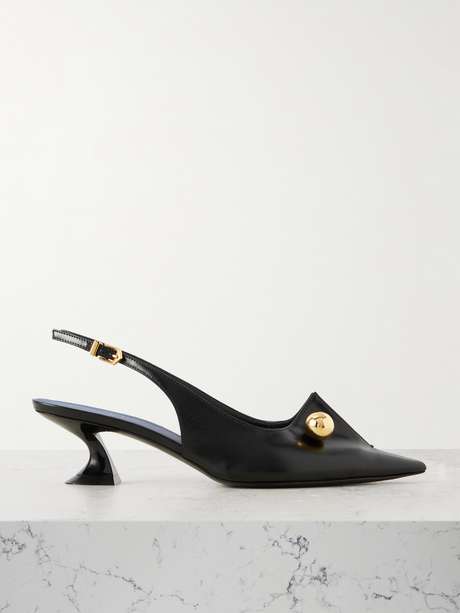 Lanvin's pumps are named after the polished gold-tone bars 'Piercing' the split vamps. They're made from glossed-leather and have pointed toes and fluted 50mm kitten heels. They'll look especially chic peeking out from beneath wide-leg pants.