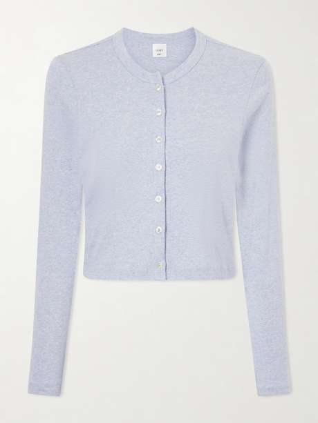 LESET’s ‘Nando’ cardigan is made from cotton-jersey with a fine mélange effect. Wear it solo, buttoned-up to the crew neck, or left open over a camisole.