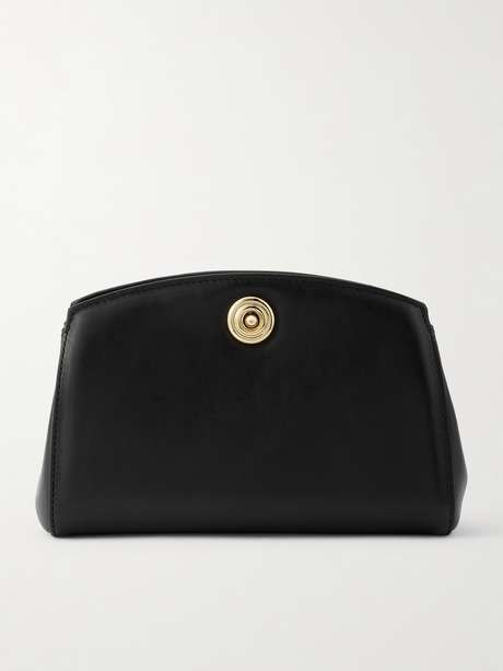 The gold-tone push-lock on Liffner's clutch has a spiralling shape inspired by a mandala symbol. Crafted in Italy from leather, it has a compact shape with a curved top and holds enough space inside for your phone, keys and lipstick.