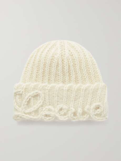 LOEWE Embroidered ribbed mohair-blend beanie