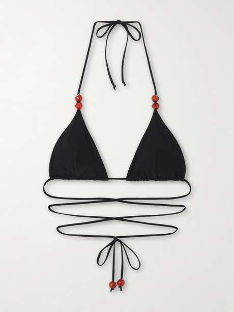 Magda Butrym's bikini top is adorned with sculptural beads. It's made from quick-drying stretch fabric with adjustable triangle cups and has extra-long straps that are designed to wrap across your waist. Complete the set with the matching briefs.