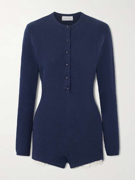 Magda Butrym brings her signature balance of softness and sensuality to this refined playsuit. Made from cotton-terry, it's shaped with a subtly nipped-in waist and has contrasting lace trims peeking from beneath the hem for an undercurrent of femininity. Style yours with sandals or loafers to shift effortlessly between lounge and city dressing.