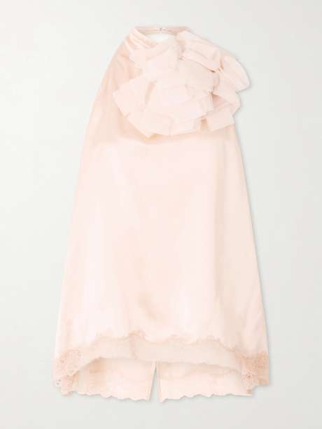 MAGDA BUTRYM Appliquéd lace-trimmed silk-satin halterneck top