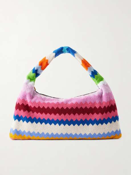 Missoni’s shoulder bag captures the joy of a sun-drenched day. Made from cotton-terry patterned with the house’s iconic zigzag stripes in vibrant shades, it has a slouchy shape that fits all your daily essentials.