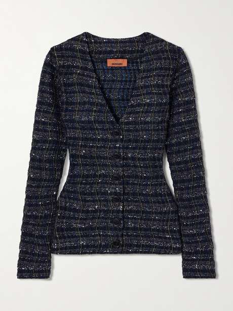 MISSONI Caperdoni sequin-embellished checked crochet-knit cardigan