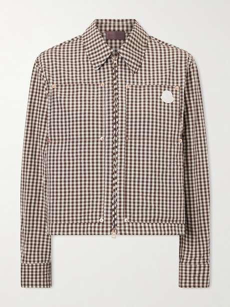 MONCLER Cropped appliquéd gingham cotton-blend shirt