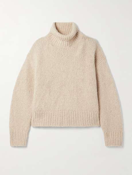 Nili Lotan's 'Tabitha' sweater is designed with subtle cable-knit detailing along the nape – a hallmark of the brand's meticulous craftsmanship. It's made from a plush cashmere and silk-blend and has ribbed trims and a chic turtleneck.