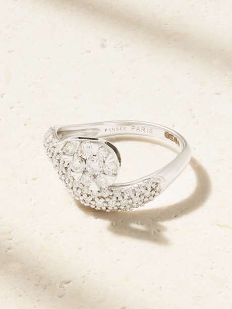 Persée's 'Alliance' ring creates a beautiful sense of movement with its sweeping band. Resembling two halves meeting, it's crafted from 18-karat gold set with luminous diamonds at the crown – with a variety of sizes and cuts, they sparkle exquisitely.