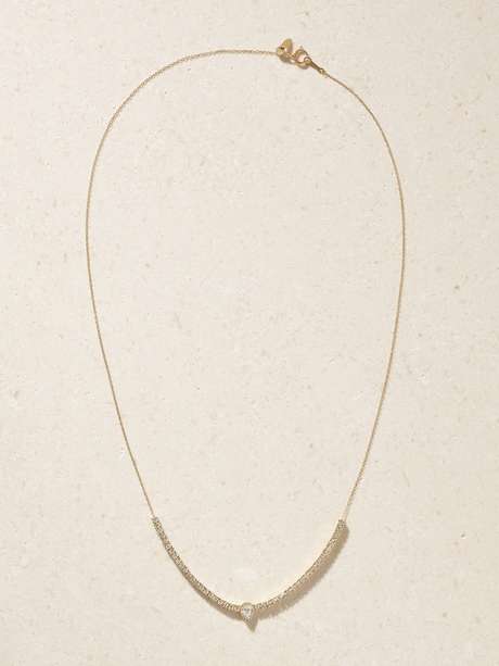 Persée's necklace is draped with a generous row of diamonds on either side of its pear-cut centerpiece. It's made from 18-karat gold in delicate proportions – subtle and wearable, you'll enjoy yours endlessly.