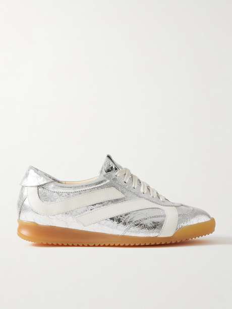 Proenza Schouler’s ‘Track’ sneakers are designed with curved panels that showcase the label's eye for artistic detail. Made from leather in a metallic silver shade, they have gripped rubber soles and memory foam insoles for comfort. The ecru laces complement the wavy accents.
