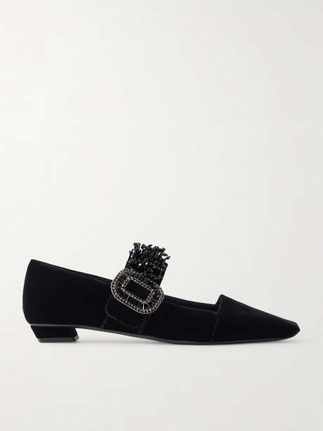 ROGER VIVIER Belle Vivier embellished velvet Mary Jane pumps