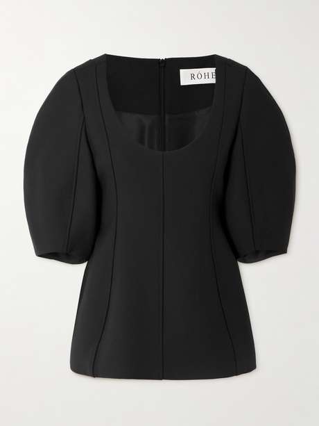 RÓHE's top has a structural shape accentuated by raised seems. It's been made in Italy from wool-blend and is designed with oversized puffed sleeves and a nipped-in waist.