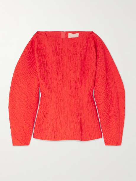The hourglass shape of Roksanda's 'Eni' top looks so elegant without effort. It's cut from red satin-cloqué with a wide boat neckline and a pinched waist. Pair yours with the coordinating pants in our edit.