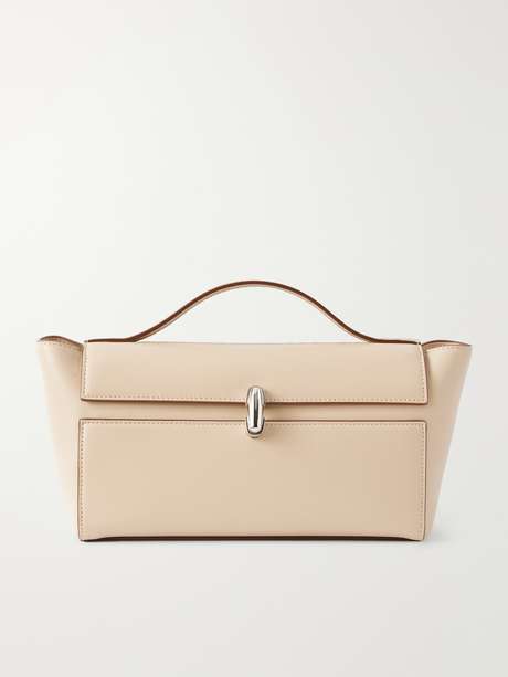 EXCLUSIVE AT NET-A-PORTER. Savette's debut 'Symmetry' collection celebrates "geometry in its purest forms: parallel and perpendicular lines". Part of the sleek range, this 'Pochette' tote has been handmade in Italy from leather and minimally detailed with gleaming silver-tone hardware. The interior is perfectly sized to fit your phone, keys and cardholder.