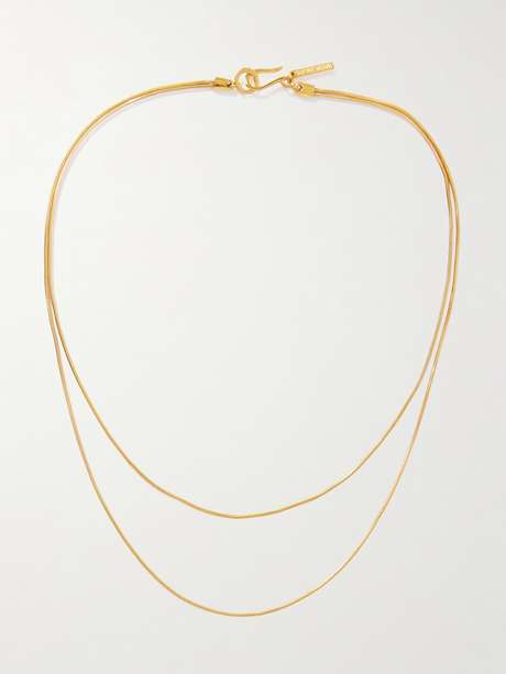 Sophie Buhai's creations always have an elegant sense of restraint. This 'Diana' necklace is made from slim gold vermeil links that drape in two tiers. The short drop hangs perfectly under an open shirt collar.