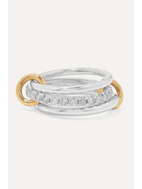Interlocking rings are Spinelli Kilcollin's signature - this set of three 'Petunia' ones is designed to be worn stacked on one finger or linked across the hand. They're hand-cast from polished sterling silver and pavé-set with 1.20-carats of shimmering brilliant-cut diamonds. The 18-karat gold connectors not only create a cool contrast, but make them easy to style with mixed metals, too.