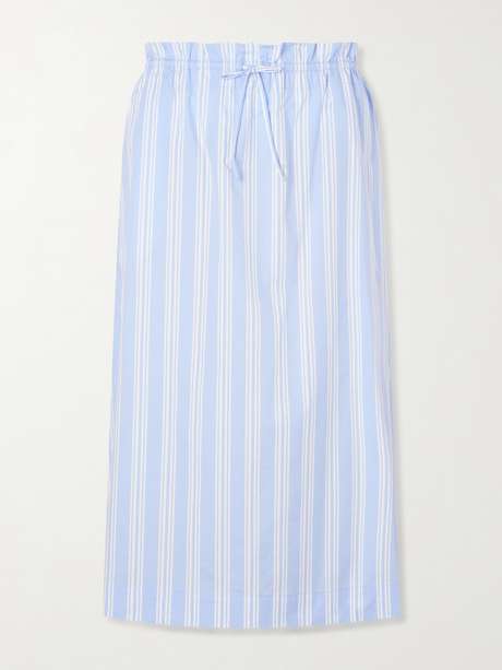 STAUD Shore striped cotton-blend poplin midi skirt