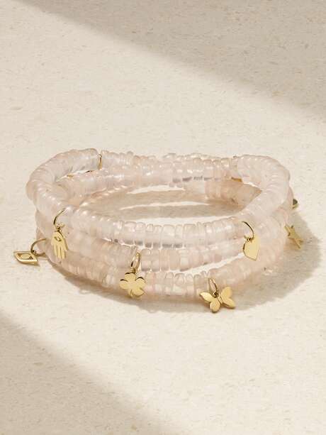 SYDNEY EVAN Convertible 14-karat gold rose quartz bracelet