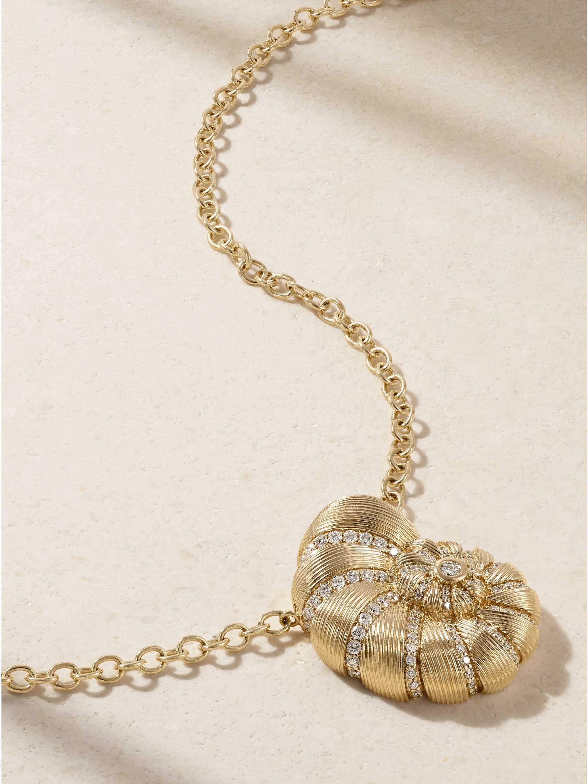 SYDNEY EVAN Fluted Nautilus 18-karat gold diamond necklace