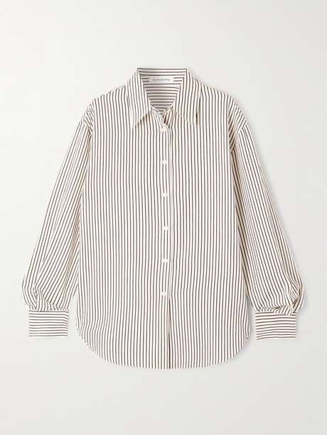 You'll get seasons of wear out of The Frankie Shop's classic 'Peri' shirt. Tailored from fluid Lyocell-blend twill, it's printed with pinstripes and has a pointed collar. The curved hem makes it easy to tuck in, if you wish.