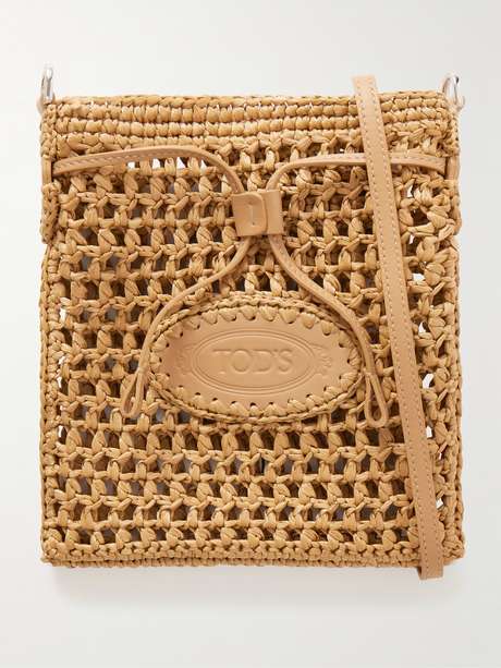 The 'EBL' bag by Tod's is woven from raffia to a softly structured bucket silhouette. Trimmed in leather with a drawstring top, it’s sized to fit a phone, wallet and sunglasses—carry it with relaxed tailoring or warm-weather dresses.