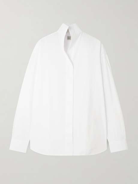 TOTEME's 'Sharp' shirt is named for its sculptural collar and crisp silhouette. It's tailored from cotton-poplin for an oversized fit. Style it with the cuffs undone.