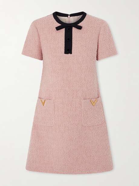 Valentino Garavani's dress is so charming. Inspired by '60s shift styles, it's been cut in Italy from wool-blend bouclé and has a bow at the neck and 'VLogo' plaques on the patch pockets. Wear yours with knee boots or socks and Mary Janes.
