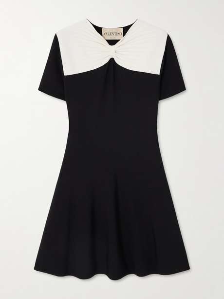 VALENTINO GARAVANI Bow-detailed two-tone stretch-knit mini dress