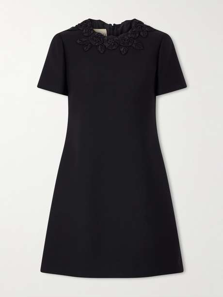 The embellishments blossoming from the neck of Valentino Garavani's dress are all hand-embroidered. It's made from wool and silk-blend crepe in a straight, shift profile with a mini hemline.