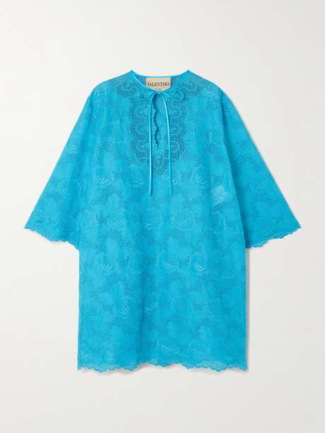 Valentino Garavani's dress is perfectly glamorous. Made from broderie anglaise cotton, it's cut in a '60s-esque shift silhouette with elegantly cropped sleeves.