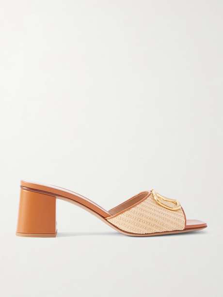 VALENTINO GARAVANI VLogo leather-trimmed raffia sandals