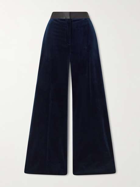 VICTORIA BECKHAM Alina satin-trimmed cotton-blend velvet wide-leg pants