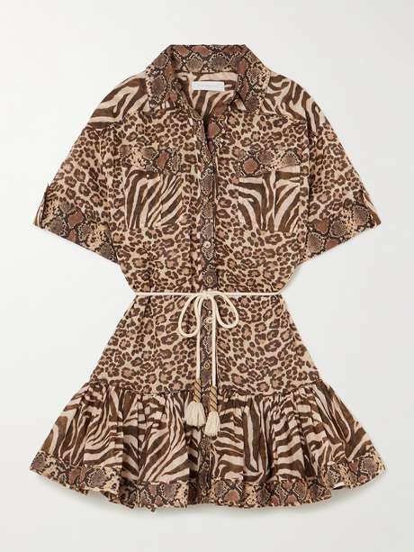 Zimmermann's 'Wanderlust Lantern' mini dress is named for the far-flung landscapes it evokes. It's cut from airy cotton with a fluttery tiered hem and a tasseled belt.