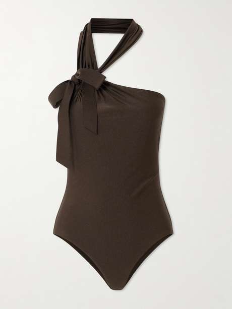 Zimmermann's 'Awaken' swimsuit has an asymmetric neckline and halter ties that thread through the front and knot into a neat bow. It's made from sculpting fabric and offers medium coverage. Wear yours with a pareo or as a bodysuit with jeans.