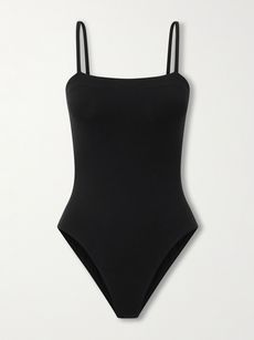 What we’re wearing: An incredibly cut, standout swimsuit and a wide-brimmed hat.