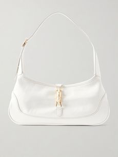 What we’re wearing: Rich-looking primary colors, a statement bag and no-nonsense heel.